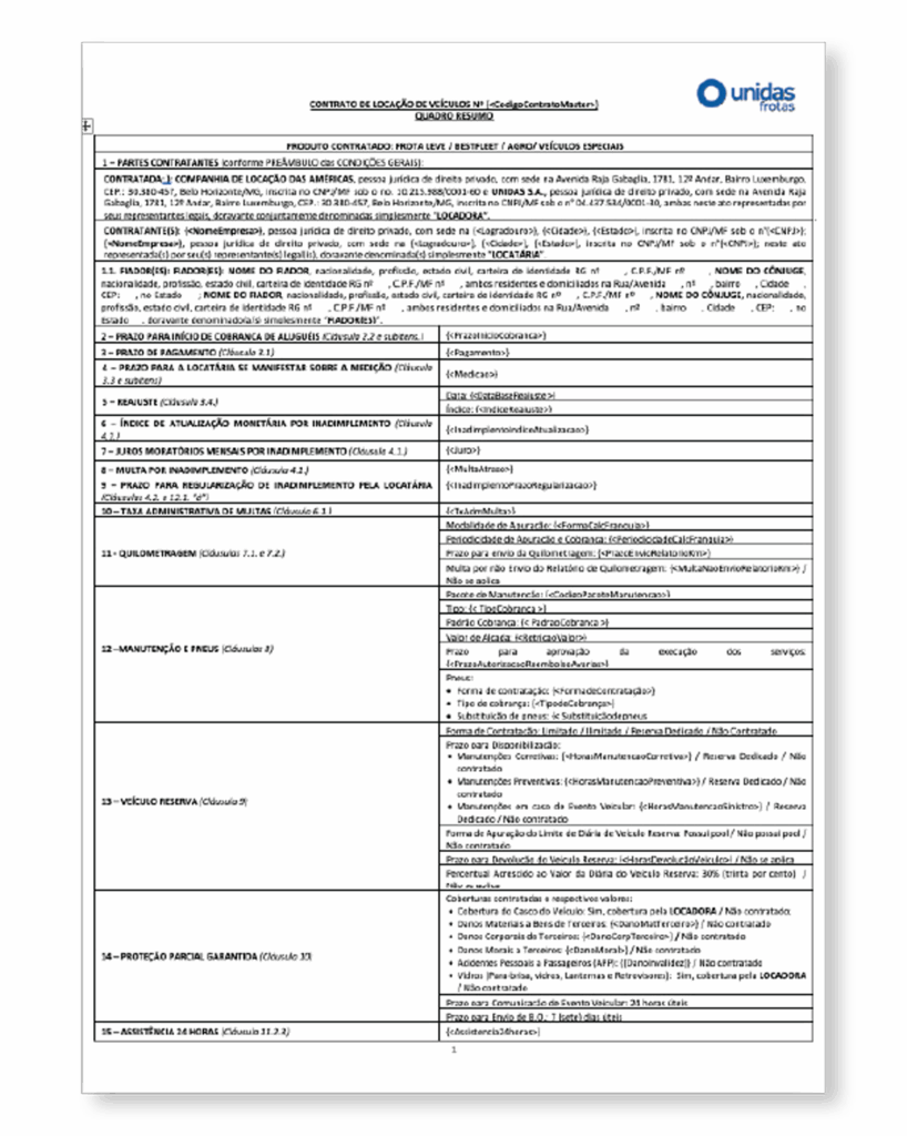 Contratos personalizados e revisados jurídicamente para a empresa Unidas Frotas. Veja abaixo o antes e o depois.