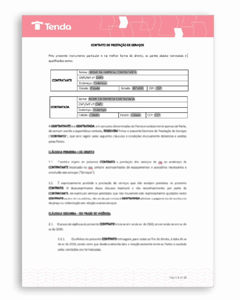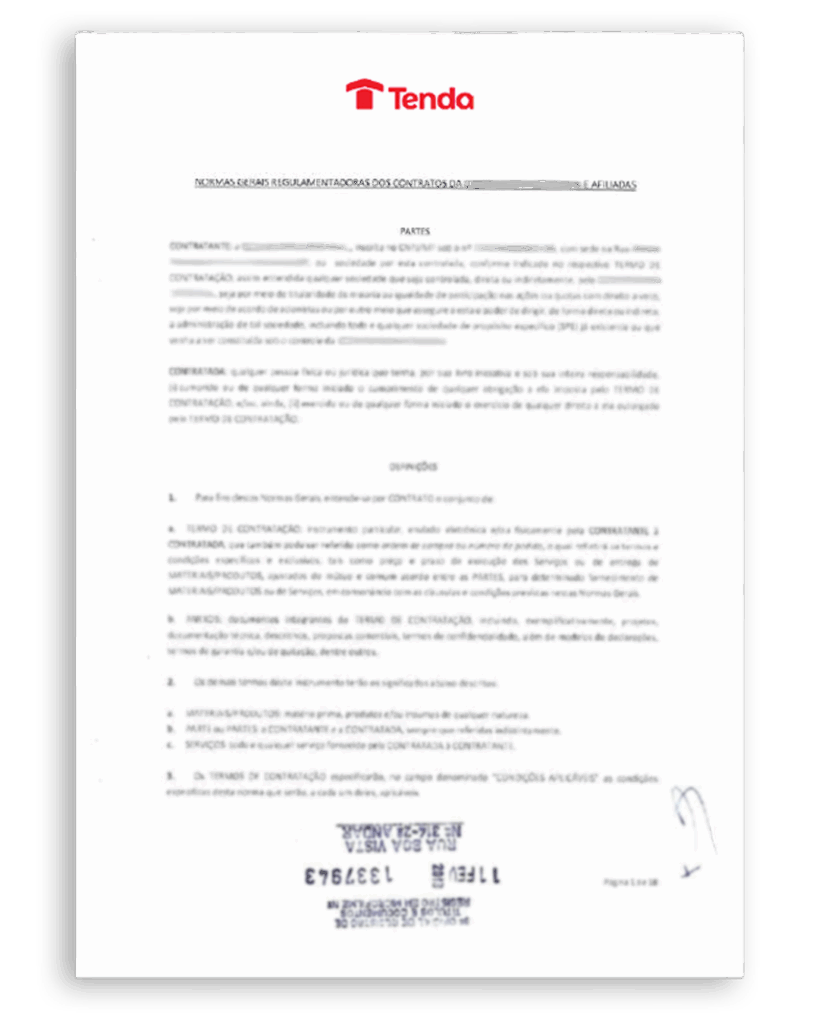Contratos personalizados e revisados jurídicamente para a empresa Tenda. Veja abaixo o antes e o depois.